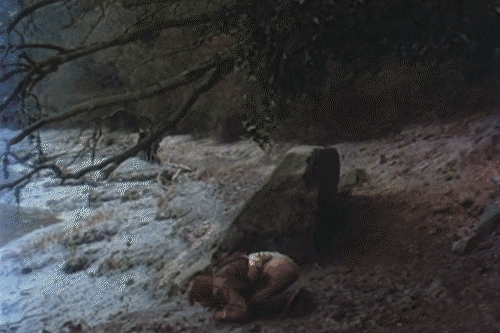 For some reason the SS officer and Gestapo need to stage his inevitable death to look like a hunting accident, so they settle on throwing him off of a cliff. Much to their consternation Thorndyke does not die, and is instead able to worm-crawl his way through the forest to a river, elude them, and escape.